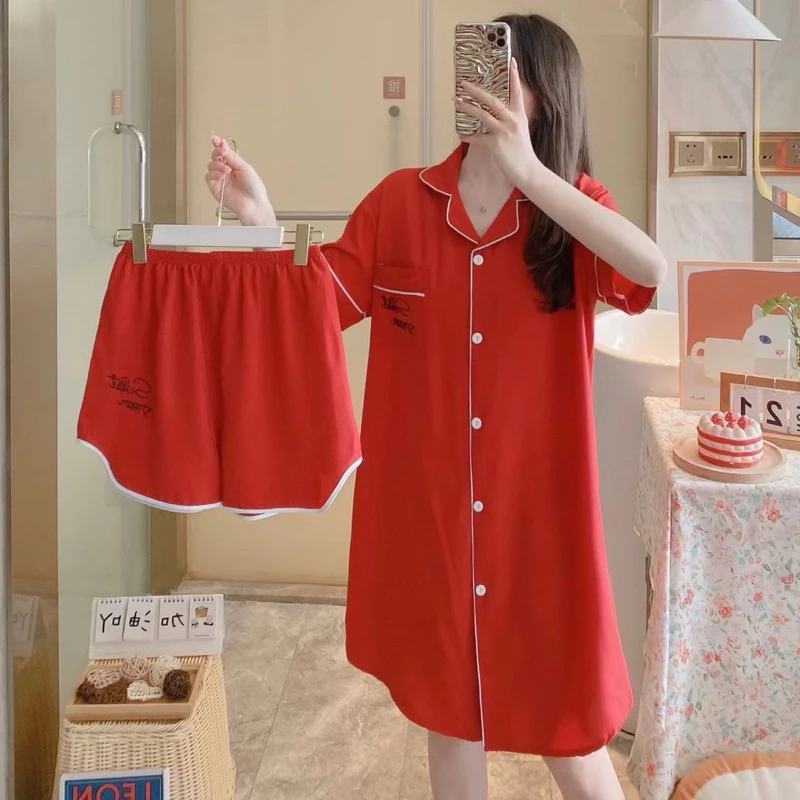 Be the first to review “ชุดนอนผ้าไหมอิตาลีกระโปรง+กางเกงขาสั้น สีแดง”
