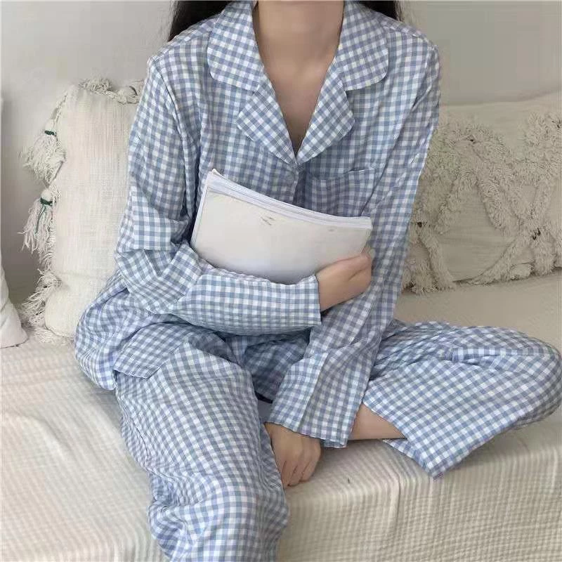 Be the first to review “ชุดนอนแขนยาวขายาว ผ้าคอตตอน ตารางหมากรุก สีฟ้า”